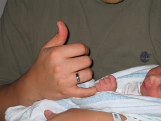 Around 3:30am I started to feel sick – I had Ray get me a bucket and he called the nurse. She gave me something that was supposed to stop it, but that also just came up a few minutes later. By 4:30am I had been given my first dose of antibiotics – I was to have 2 doses for the group B strep. Audree our nurse went to take out the cervidil and check me, because now not only was I sick to my stomach, but I was also shaking uncontrollably (once again I thought I was cold from puking and laying there with just a sheet over me). She told me that those were signs of labor, and when she checked I was already 7-8 cm dilated!!! I was going to have this baby soon and I hadn’t even realized that I was in labor because the pain had been bearable!!